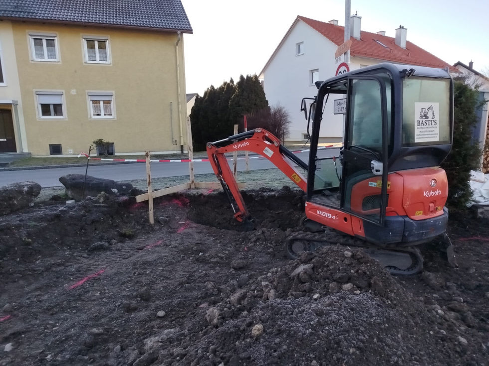 Unser Minibagger Kubota KX019-4 und unsere Rüttelplatte GPR160 waren bei Arbeiten zur Erstellung einer neuen Doppelgarage (Aushub, Erdarbeiten, Streifengraben für Fundamente ziehen) in Biessenhofen im Einsatz.